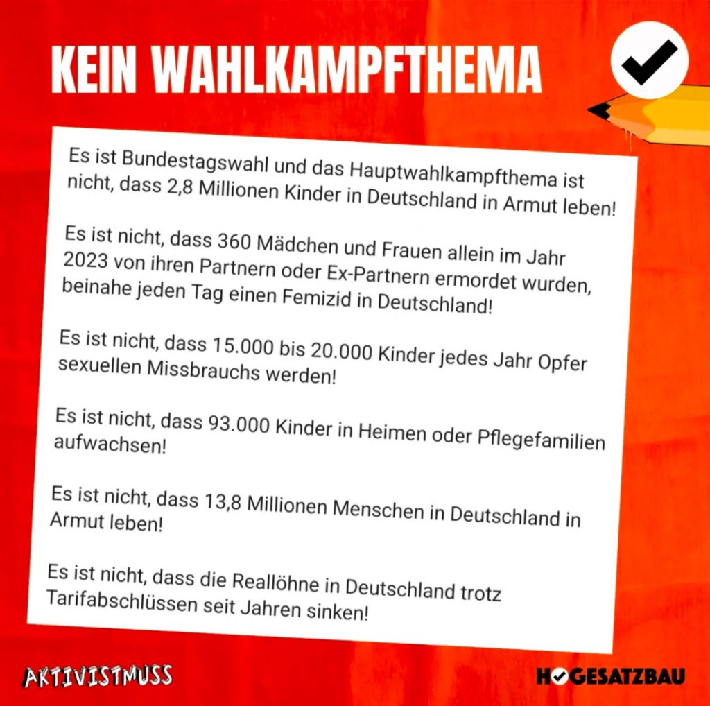 Es ist Bundestagswahl und das Hauptwahlkampfthema ist nicht, dass 2,8 Millionen Kinder in Deutschland in Armut leben!